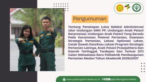 Pengumuman Penetapan Lulus Seleksi Administrasi Jalur Undangan SMK PP, Undangan Anak Petani Calon Mahasiswa Baru Politeknik Pembangunan Pertanian Medan Tahun Akademik 2026/2027